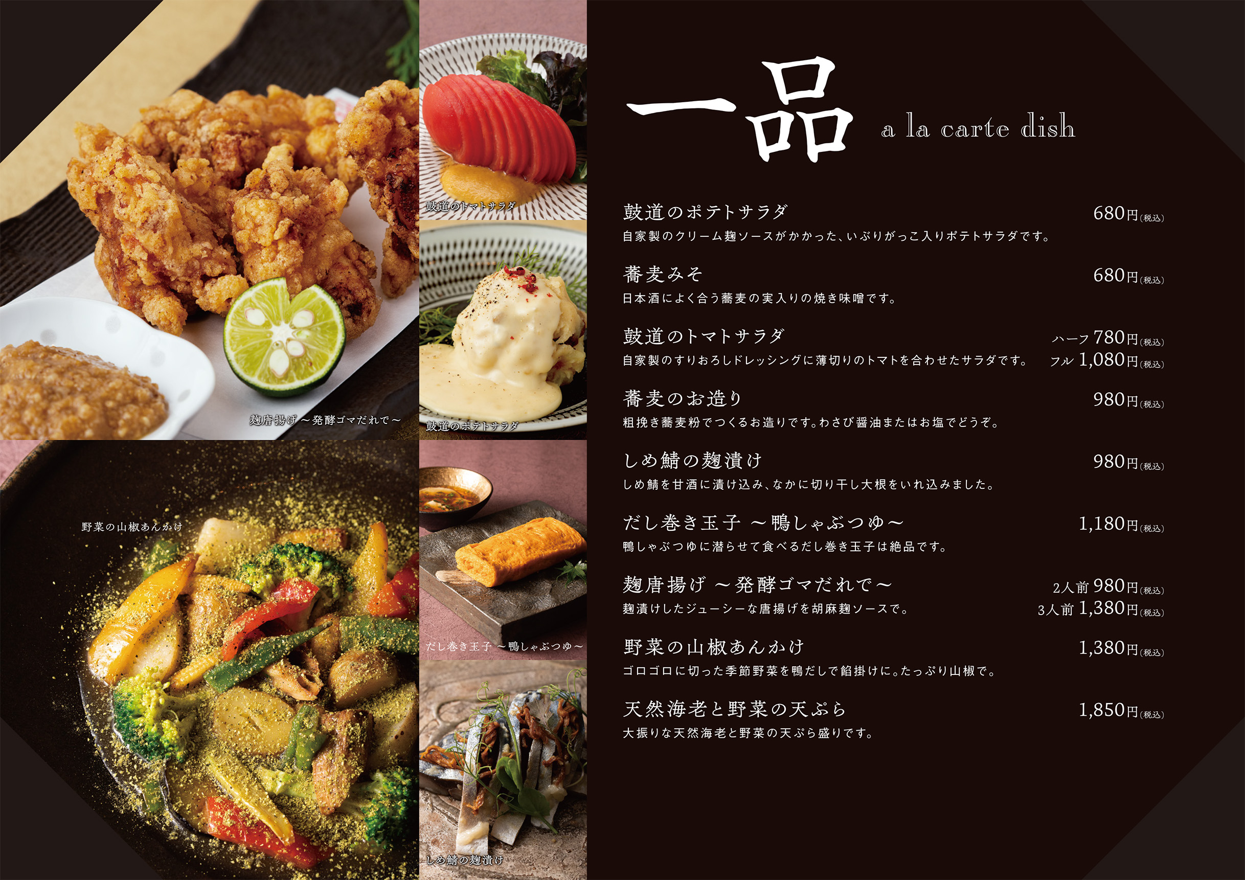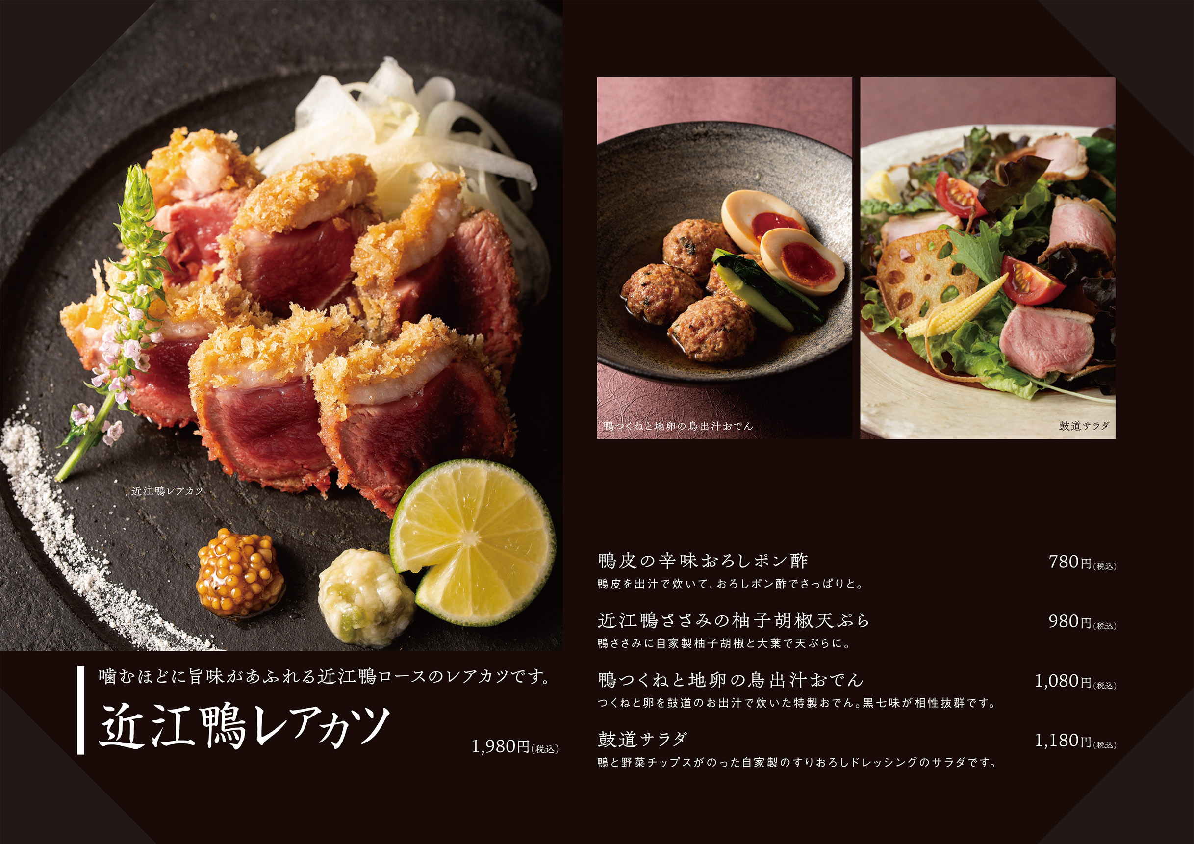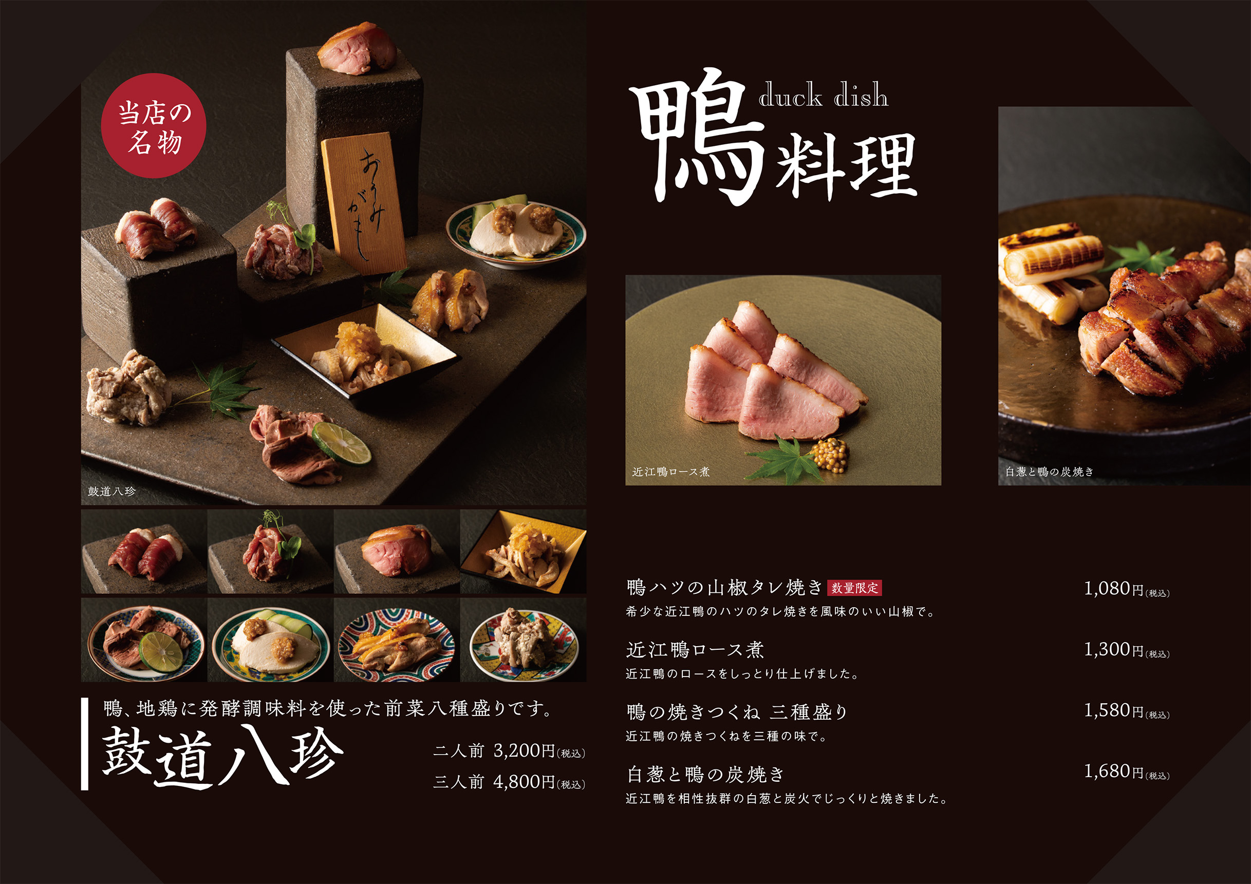 鼓道(豊中店) TEL06-6852-7558 | 鴨と醸し鼓道(緑地公園店) TEL06-6105-8000