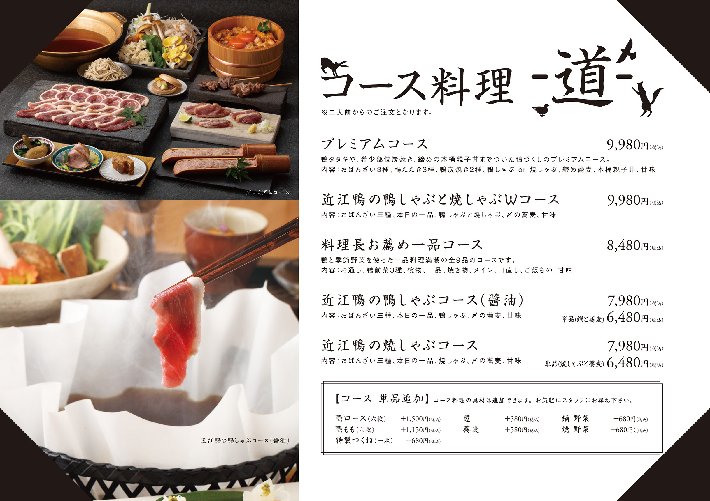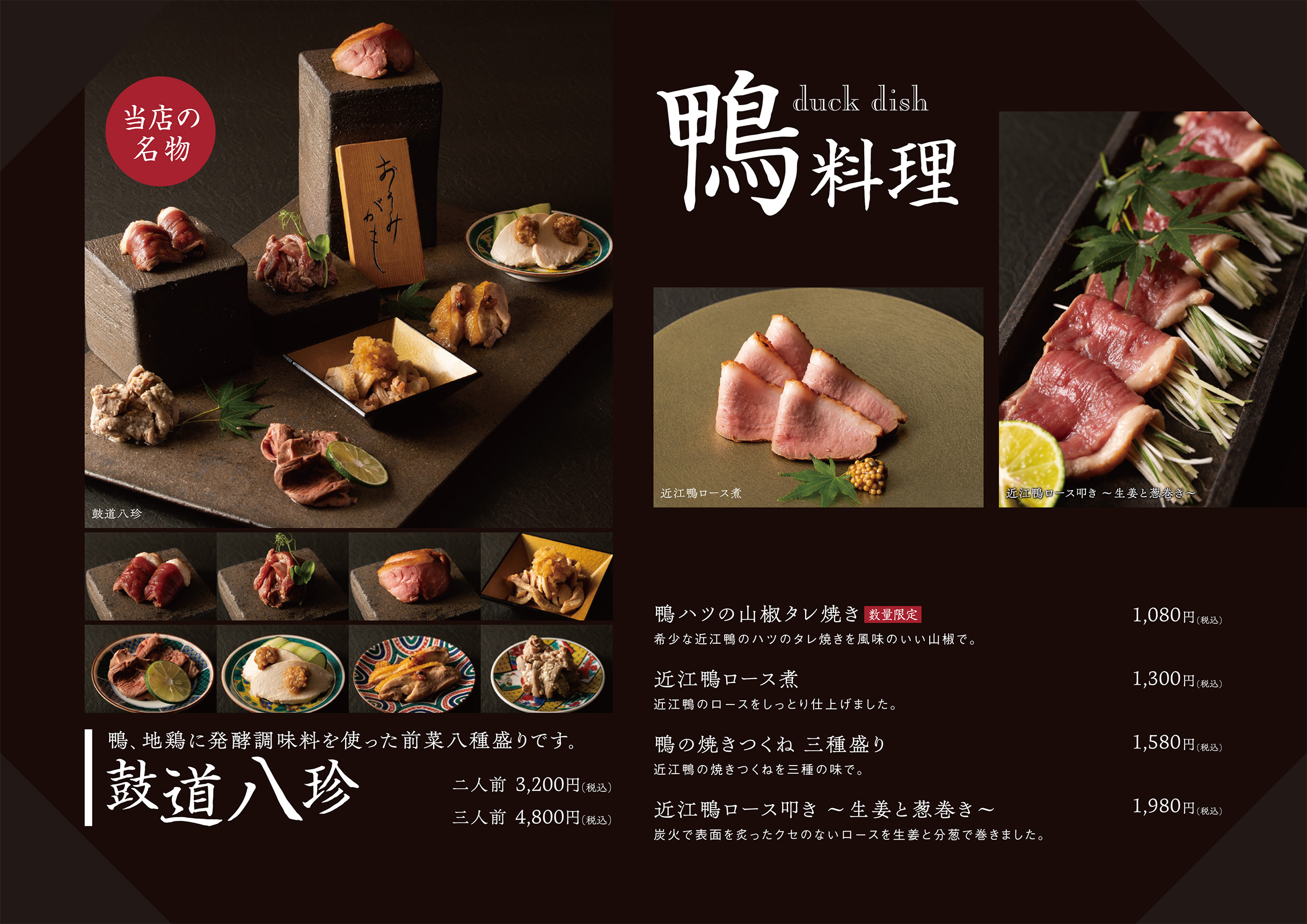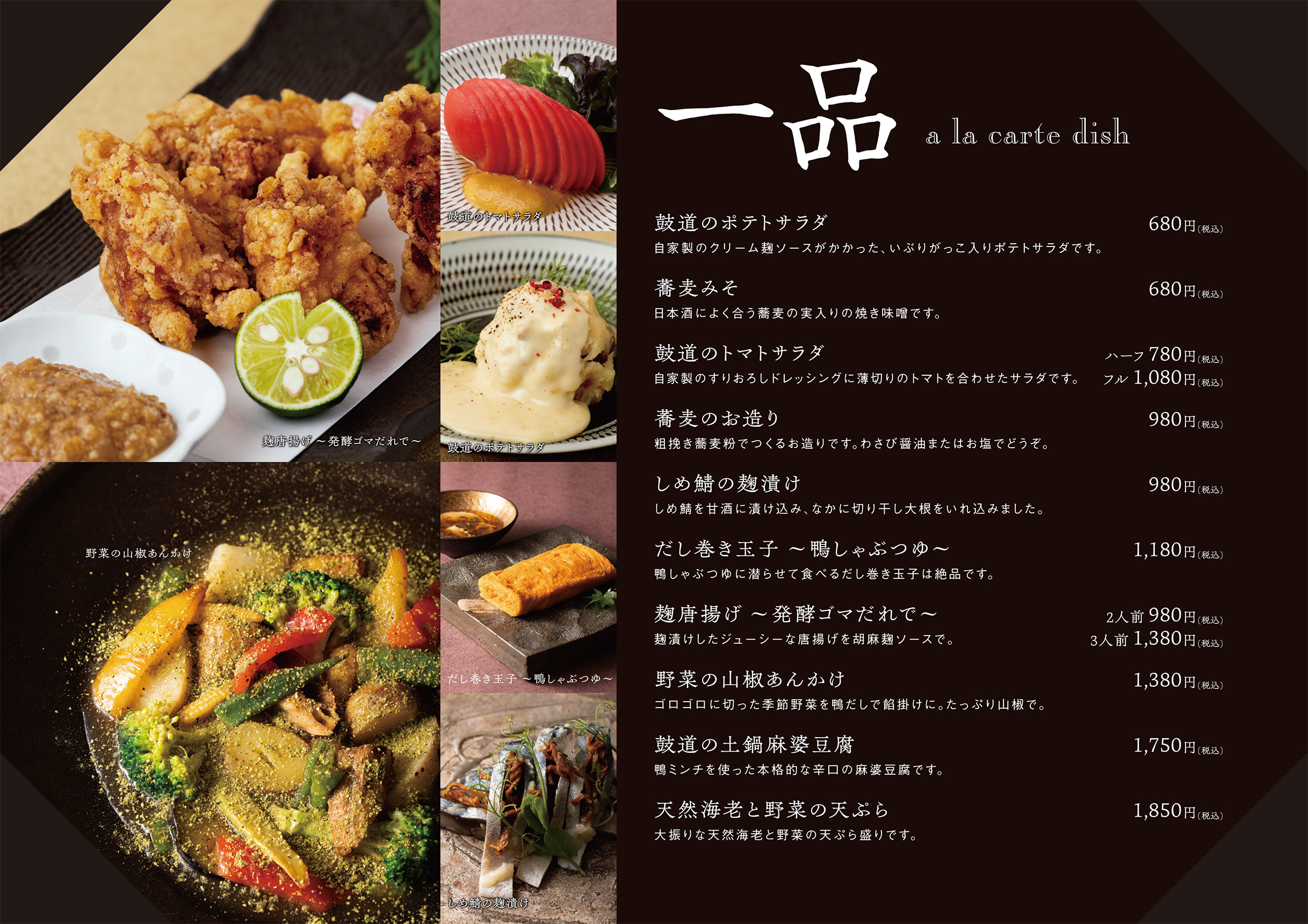 鼓道(豊中店) TEL06-6852-7558 | 鴨と醸し鼓道(緑地公園店) TEL06-6105-8000